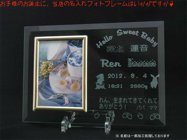 大切な思い出を刻みます… 名入れフォトフレーム【ガラスフラット・面取り加工 L版写真】エッチング サンドブラスト 名入れ商品