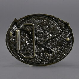 ベルトバックル 美錠大きく翼を広げた威嚇するワシが特徴的なベルトバックルワシの羽一枚ずつ細部まで、彫り込まれているベルトバックルです。